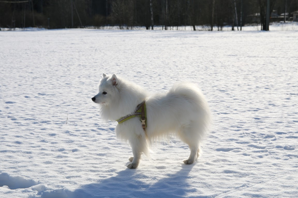 Pari viikkoa sitten oli tämän talven yksi harvoista kauniista talvipäivistä, joten oltiin taas koirien kanssa lähipellolla juoksemassa. Kuviakin oli kiva ottaa, kun kerrankin oli aurinkoista.